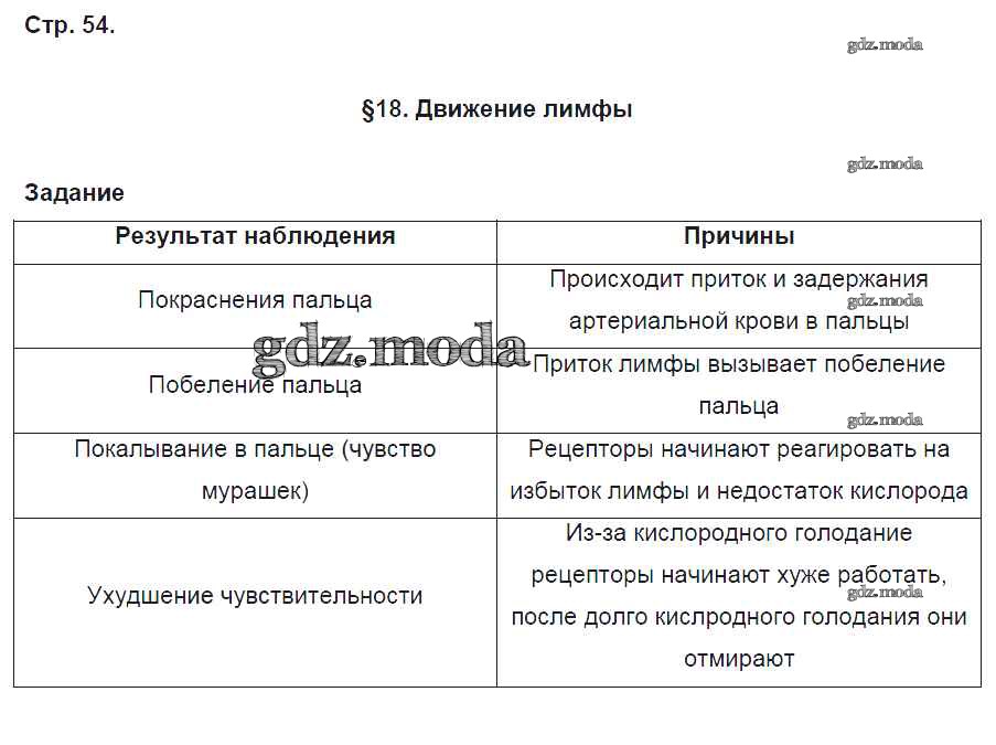 ГДЗ решение к заданию № 54 Биология 8 класс рабочая тетрадь Маш Р.Д. Вентана-граф 2019 Часть 1, Часть 2 ФГОС бесплатно на гдз.мода!