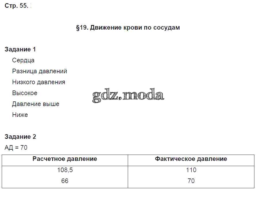ГДЗ решение к заданию № 55 Биология 8 класс рабочая тетрадь Маш Р.Д. Вентана-граф 2019 Часть 1, Часть 2 ФГОС бесплатно на гдз.мода!