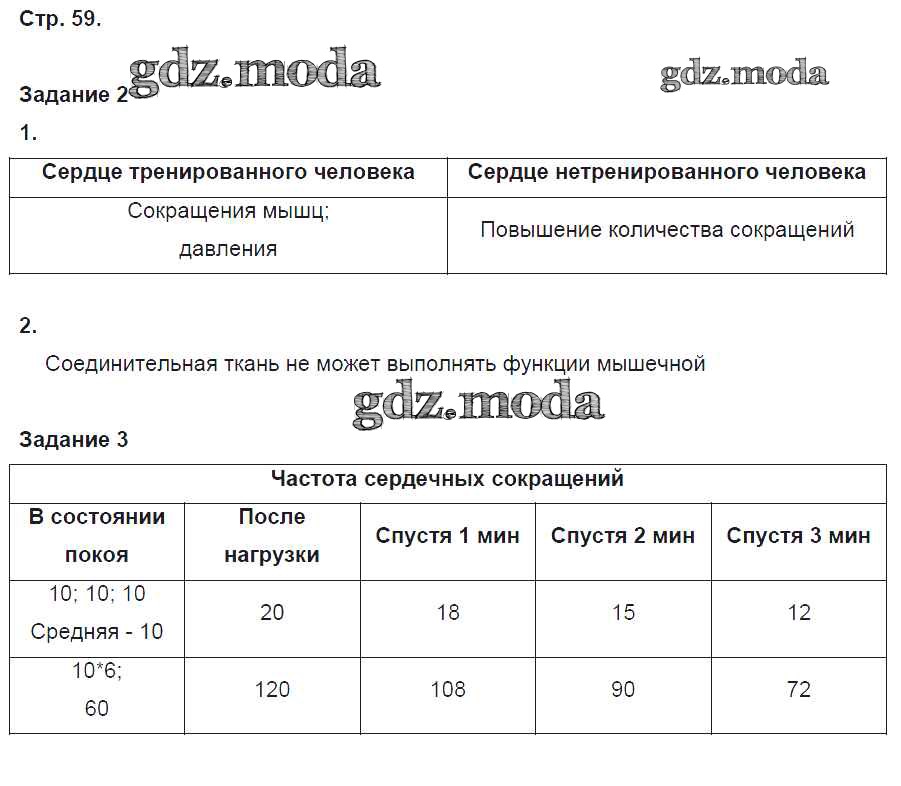 ГДЗ решение к заданию № 59 Биология 8 класс рабочая тетрадь Маш Р.Д. Вентана-граф 2019 Часть 1, Часть 2 ФГОС бесплатно на гдз.мода!