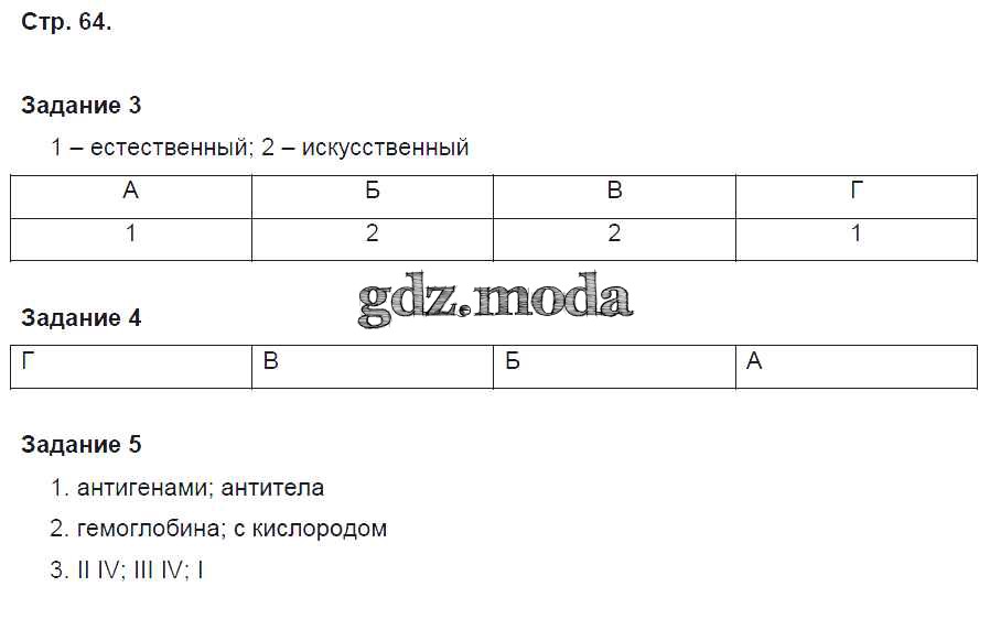 ГДЗ решение к заданию № 64 Биология 8 класс рабочая тетрадь Маш Р.Д. Вентана-граф 2019 Часть 1, Часть 2 ФГОС бесплатно на гдз.мода!