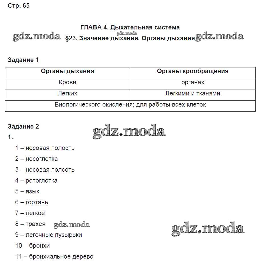ГДЗ решение к заданию № 65 Биология 8 класс рабочая тетрадь Маш Р.Д. Вентана-граф 2019 Часть 1, Часть 2 ФГОС бесплатно на гдз.мода!