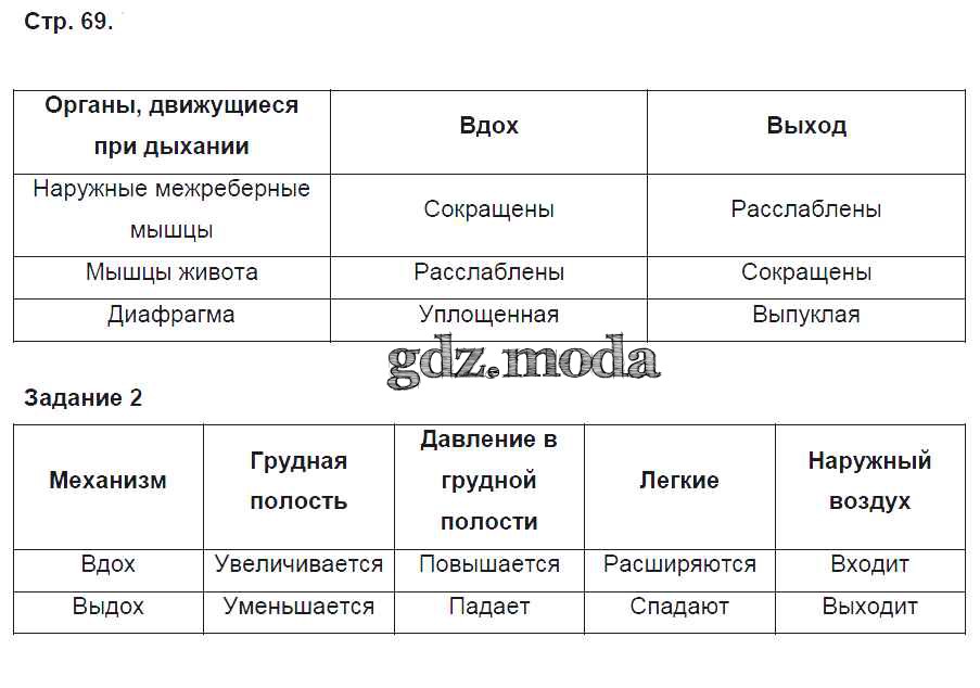ГДЗ решение к заданию № 69 Биология 8 класс рабочая тетрадь Маш Р.Д. Вентана-граф 2019 Часть 1, Часть 2 ФГОС бесплатно на гдз.мода!