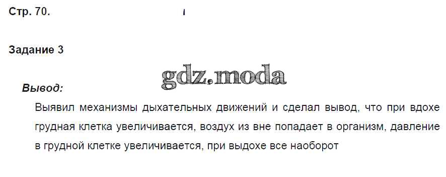 ГДЗ решение к заданию № 70 Биология 8 класс рабочая тетрадь Маш Р.Д. Вентана-граф 2019 Часть 1, Часть 2 ФГОС бесплатно на гдз.мода!