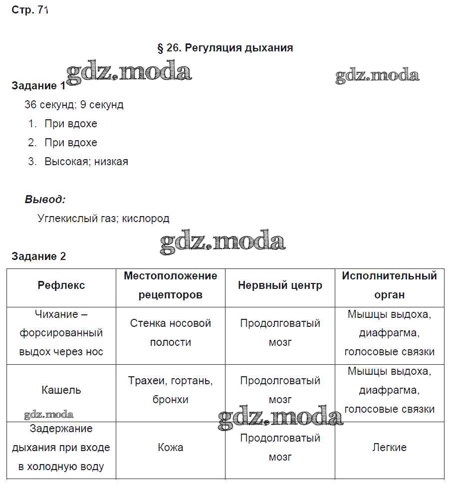 ГДЗ решение к заданию № 71 Биология 8 класс рабочая тетрадь Маш Р.Д. Вентана-граф 2019 Часть 1, Часть 2 ФГОС бесплатно на гдз.мода!