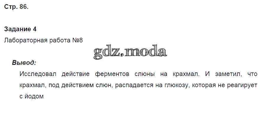 ГДЗ решение к заданию № 86 Биология 8 класс рабочая тетрадь Маш Р.Д. Вентана-граф 2019 Часть 1, Часть 2 ФГОС бесплатно на гдз.мода!
