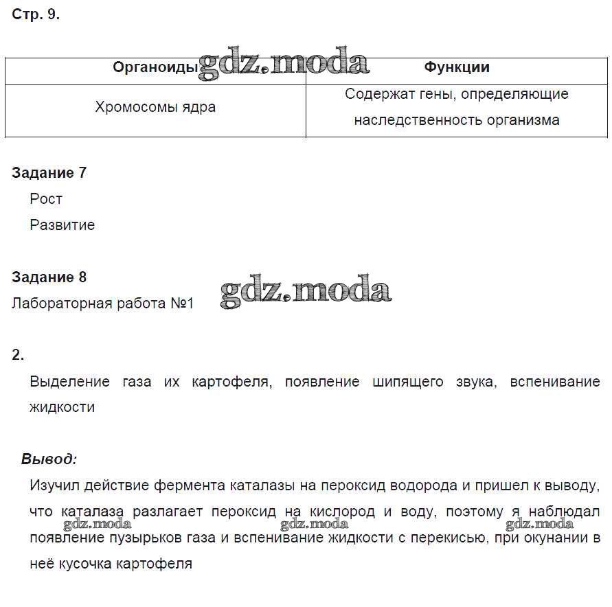 ГДЗ решение к заданию № 9 Биология 8 класс рабочая тетрадь Маш Р.Д. Вентана-граф 2019 Часть 1, Часть 2 ФГОС бесплатно на гдз.мода!