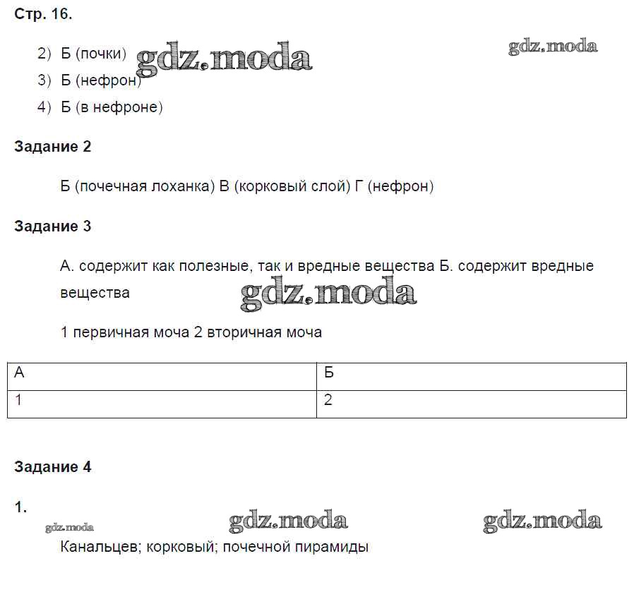 ГДЗ решение к заданию № 16 Биология 8 класс рабочая тетрадь Маш Р.Д. Вентана-граф 2019 Часть 1, Часть 2 ФГОС бесплатно на гдз.мода!