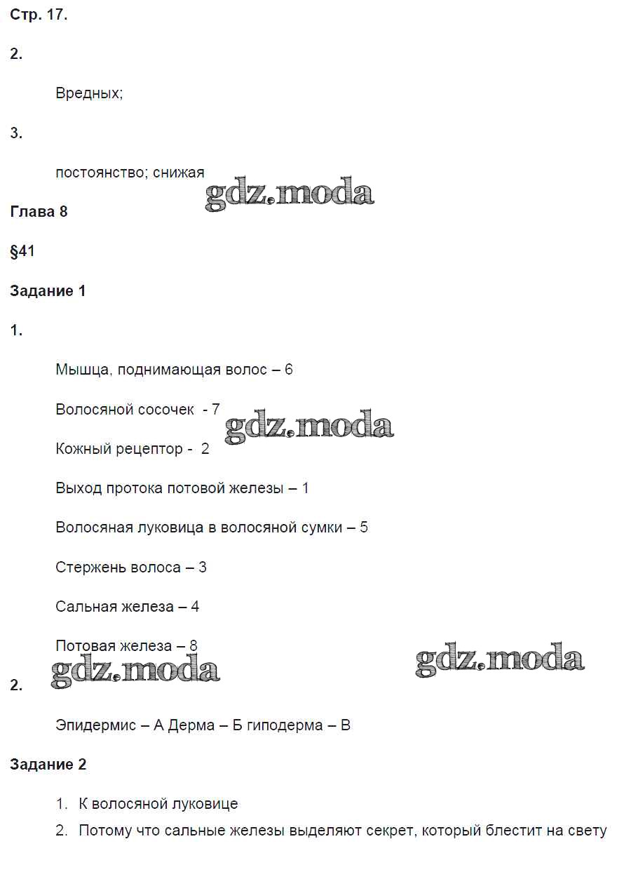 ГДЗ решение к заданию № 17 Биология 8 класс рабочая тетрадь Маш Р.Д. Вентана-граф 2019 Часть 1, Часть 2 ФГОС бесплатно на гдз.мода!