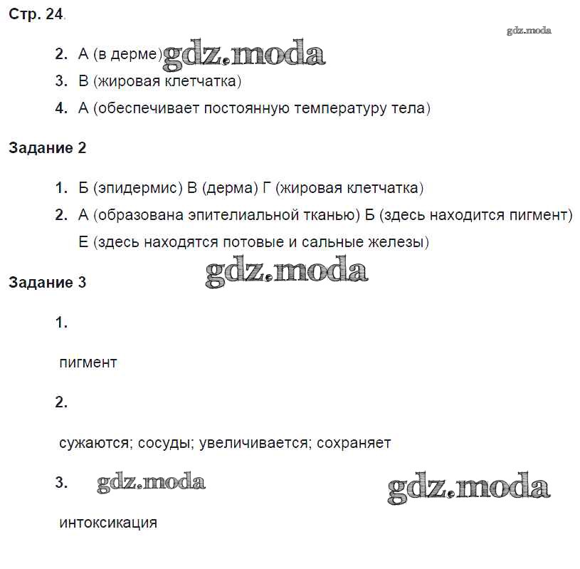 ГДЗ решение к заданию № 24 Биология 8 класс рабочая тетрадь Маш Р.Д. Вентана-граф 2019 Часть 1, Часть 2 ФГОС бесплатно на гдз.мода!