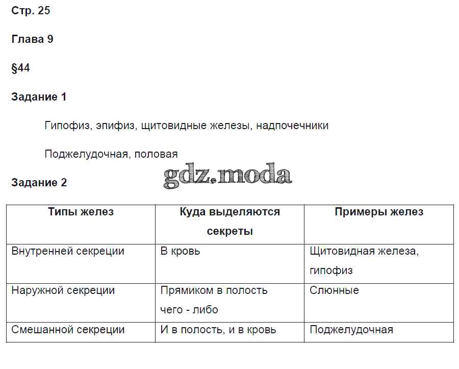 ГДЗ решение к заданию № 25 Биология 8 класс рабочая тетрадь Маш Р.Д. Вентана-граф 2019 Часть 1, Часть 2 ФГОС бесплатно на гдз.мода!