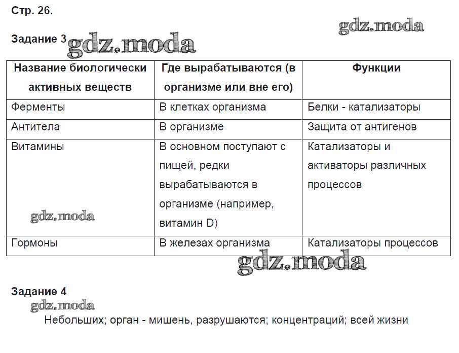 ГДЗ решение к заданию № 26 Биология 8 класс рабочая тетрадь Маш Р.Д. Вентана-граф 2019 Часть 1, Часть 2 ФГОС бесплатно на гдз.мода!