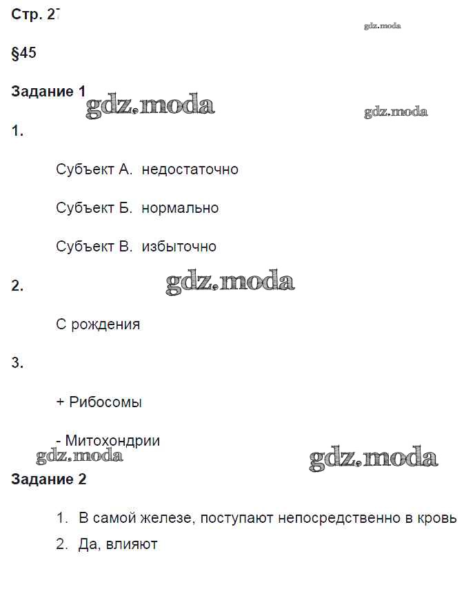 ГДЗ решение к заданию № 27 Биология 8 класс рабочая тетрадь Маш Р.Д. Вентана-граф 2019 Часть 1, Часть 2 ФГОС бесплатно на гдз.мода!