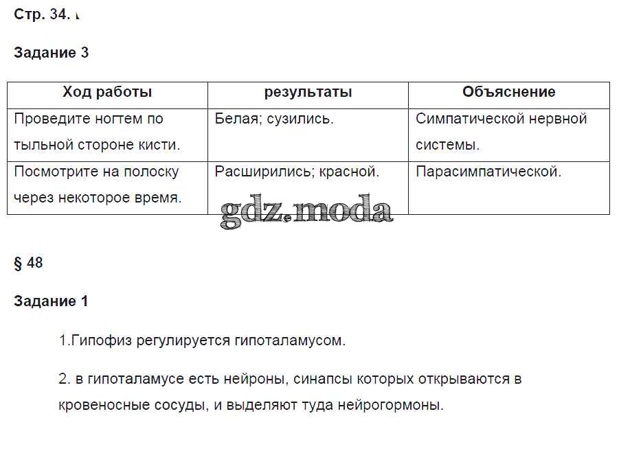 ГДЗ решение к заданию № 34 Биология 8 класс рабочая тетрадь Маш Р.Д. Вентана-граф 2019 Часть 1, Часть 2 ФГОС бесплатно на гдз.мода!
