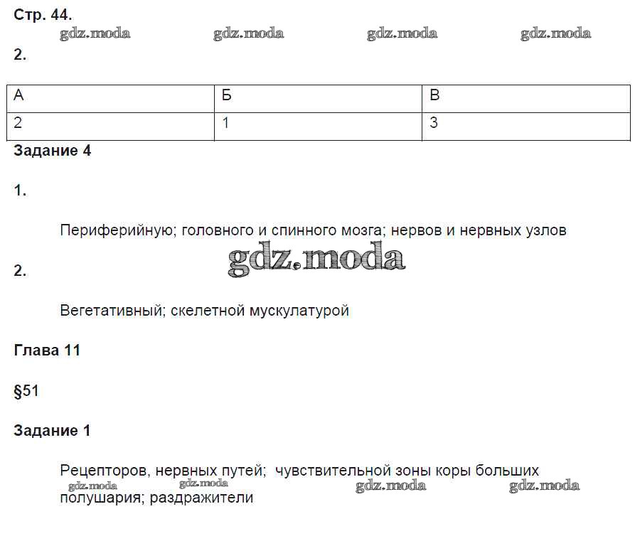 ГДЗ решение к заданию № 44 Биология 8 класс рабочая тетрадь Маш Р.Д. Вентана-граф 2019 Часть 1, Часть 2 ФГОС бесплатно на гдз.мода!
