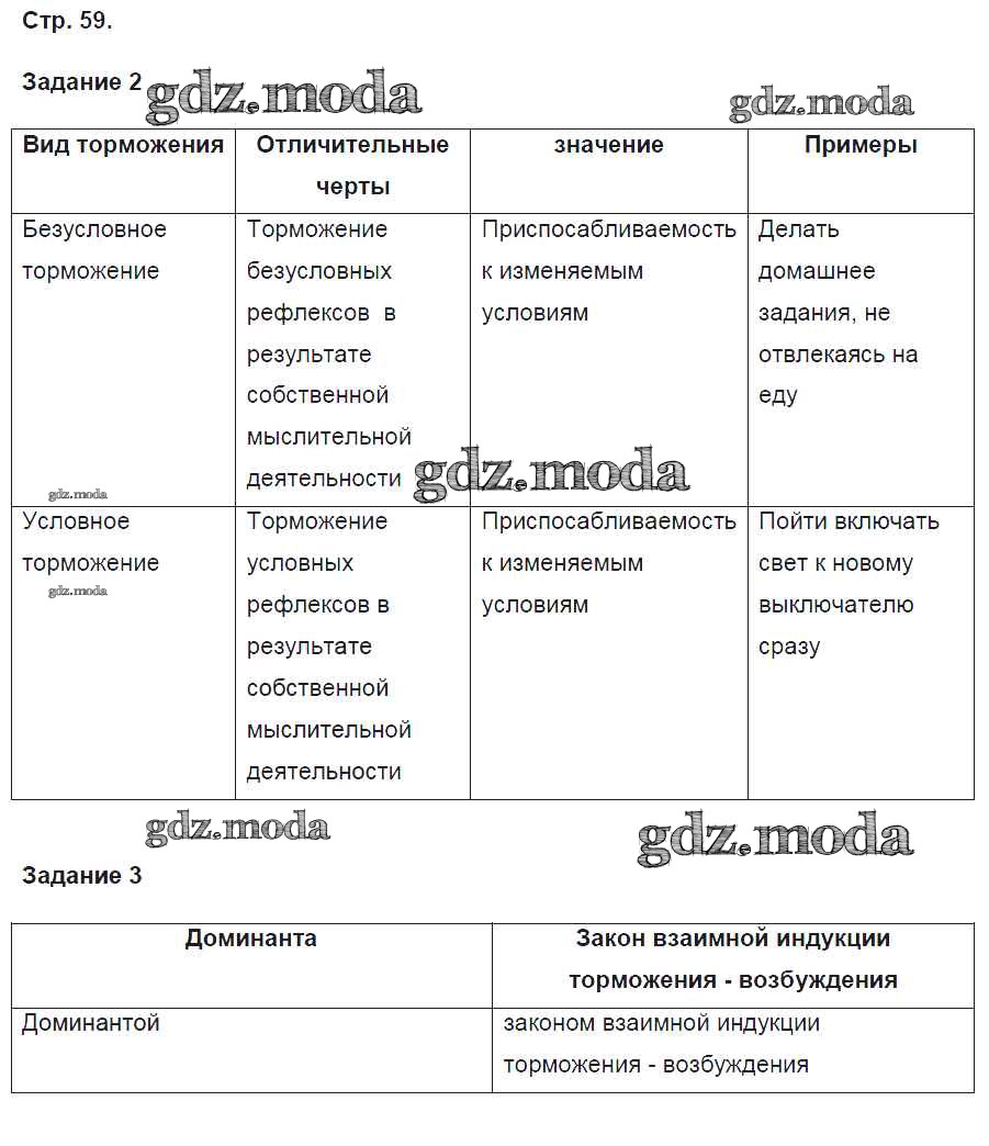 ГДЗ решение к заданию № 59 Биология 8 класс рабочая тетрадь Маш Р.Д. Вентана-граф 2019 Часть 1, Часть 2 ФГОС бесплатно на гдз.мода!