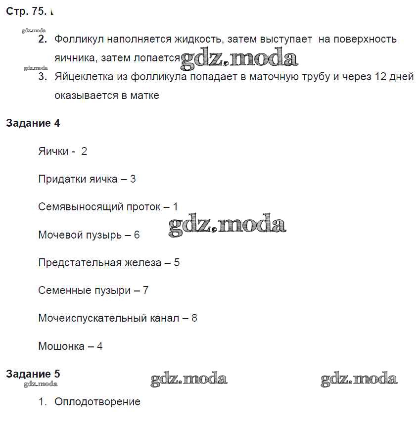 ГДЗ решение к заданию № 75 Биология 8 класс рабочая тетрадь Маш Р.Д. Вентана-граф 2019 Часть 1, Часть 2 ФГОС бесплатно на гдз.мода!
