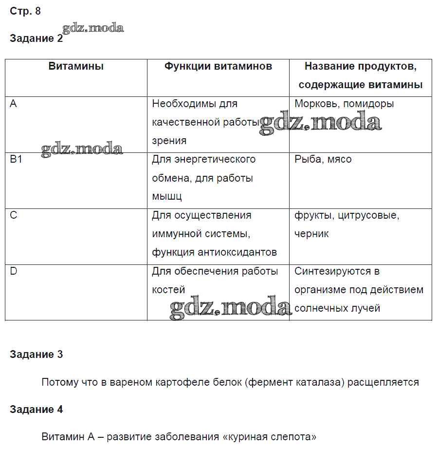 ГДЗ решение к заданию № 8 Биология 8 класс рабочая тетрадь Маш Р.Д. Вентана-граф 2019 Часть 1, Часть 2 ФГОС бесплатно на гдз.мода!