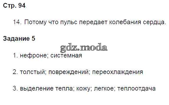 ГДЗ решение к заданию № 94 Биология 8 класс рабочая тетрадь Маш Р.Д. Вентана-граф 2019 Часть 1, Часть 2 ФГОС бесплатно на гдз.мода!