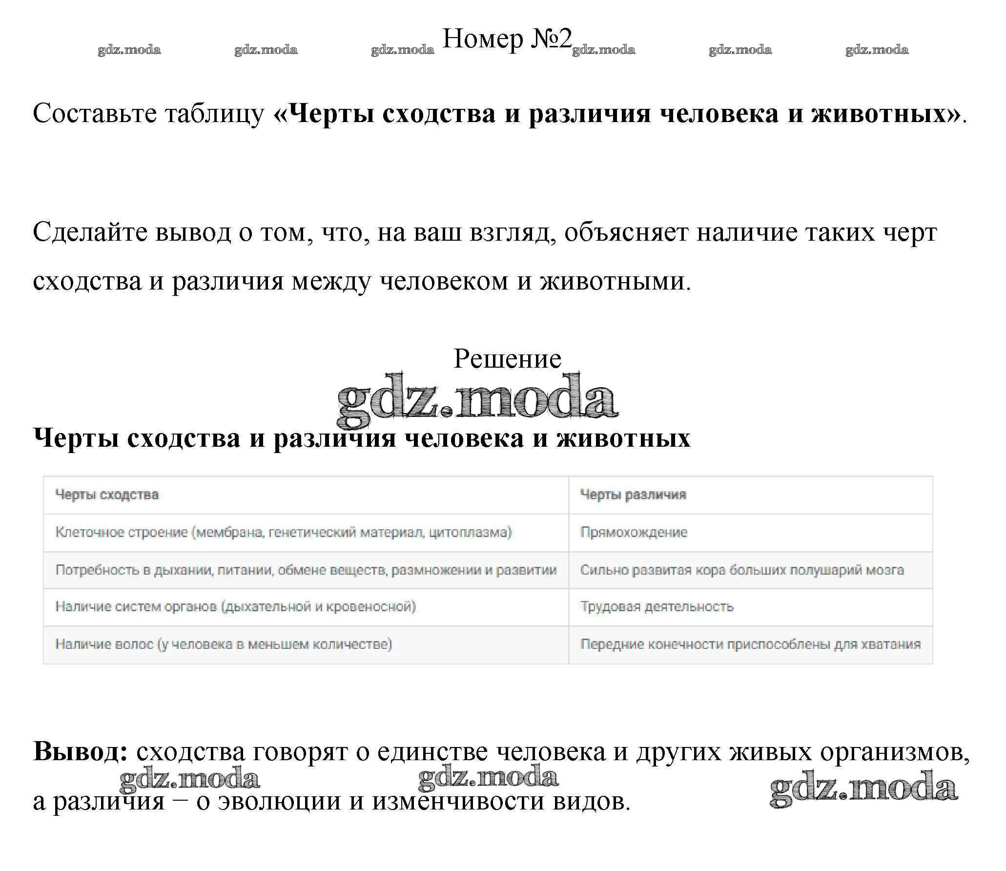 ОТВЕТ на задание № 2 Рабочая тетрадь по Биологии 8 класс Пасечник Линия жизни
