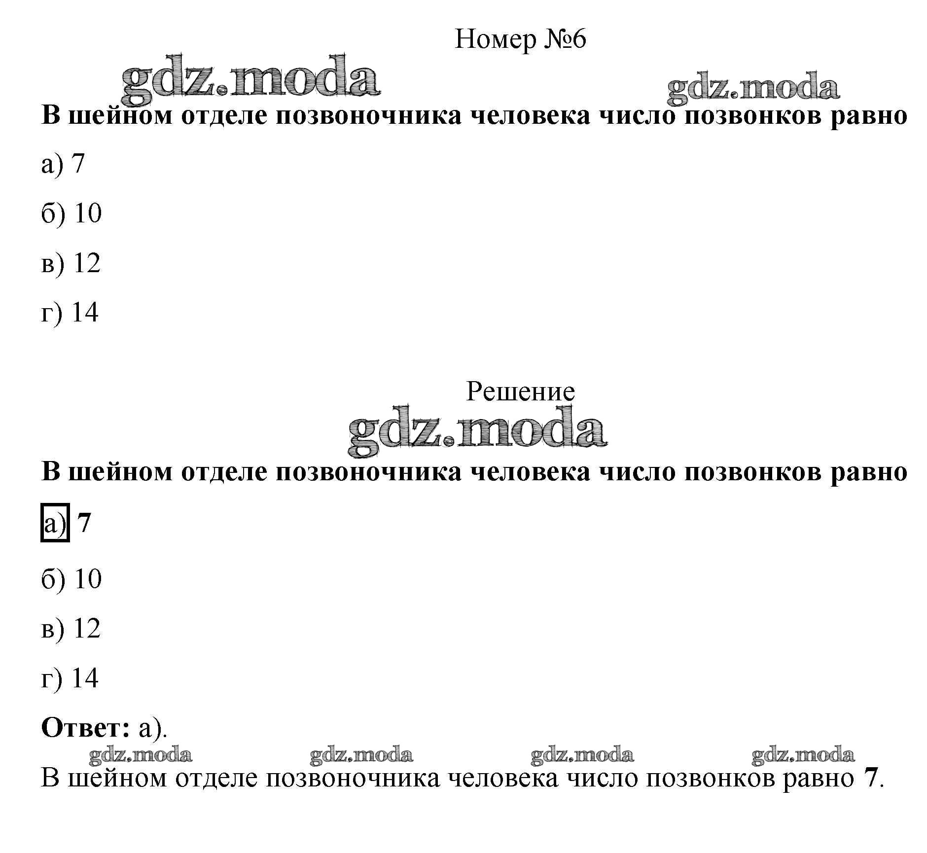 ГДЗ решение к заданию № 6 Биология 8 класс рабочая тетрадь Пасечник В.В. Просвещение 2019 ФГОС бесплатно на гдз.мода!