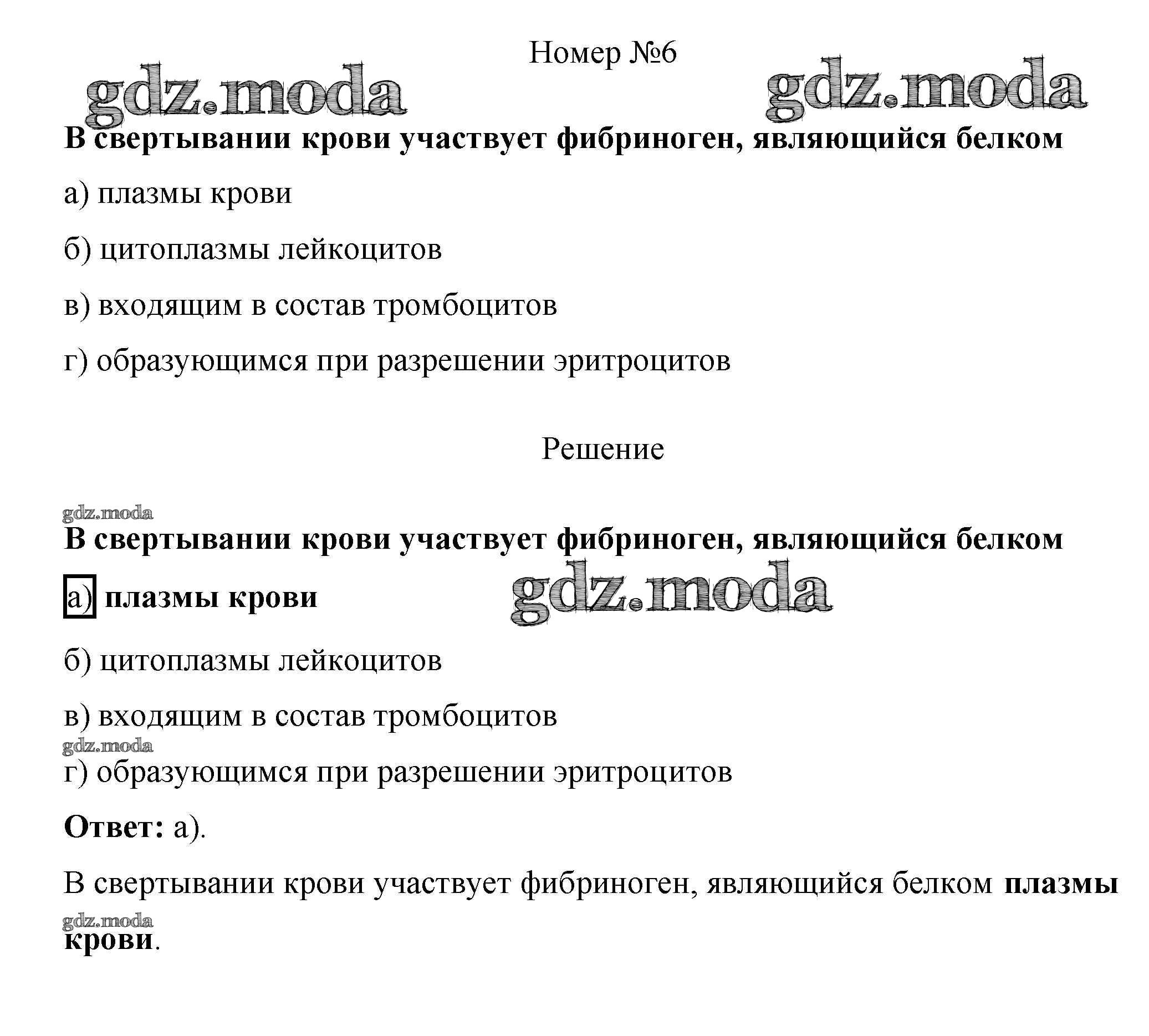 ОТВЕТ на задание № 6 Рабочая тетрадь по Биологии 8 класс Пасечник Линия жизни