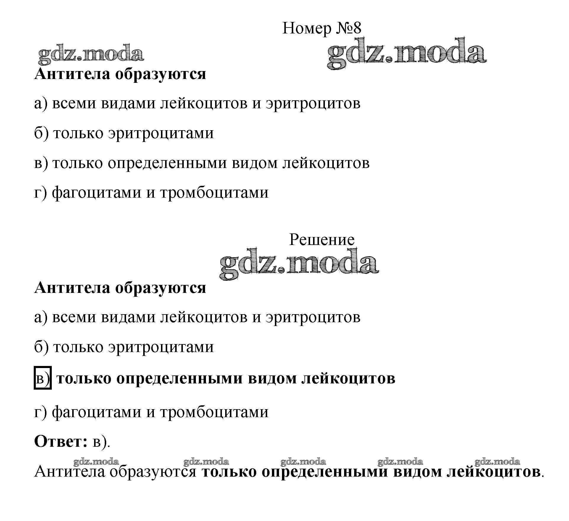 ОТВЕТ на задание № 8 Рабочая тетрадь по Биологии 8 класс Пасечник Линия жизни