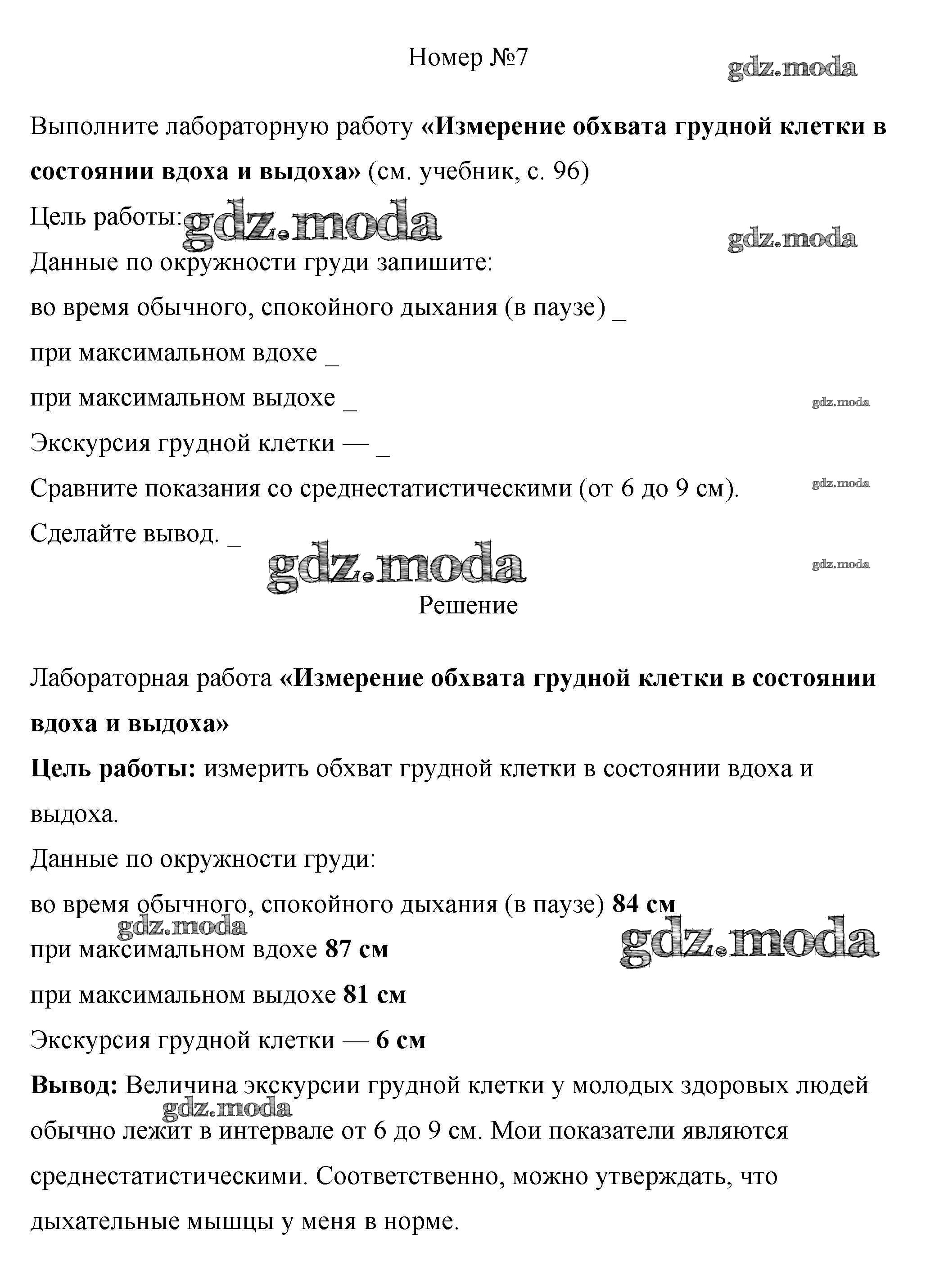 ОТВЕТ на задание № 7 Рабочая тетрадь по Биологии 8 класс Пасечник Линия жизни