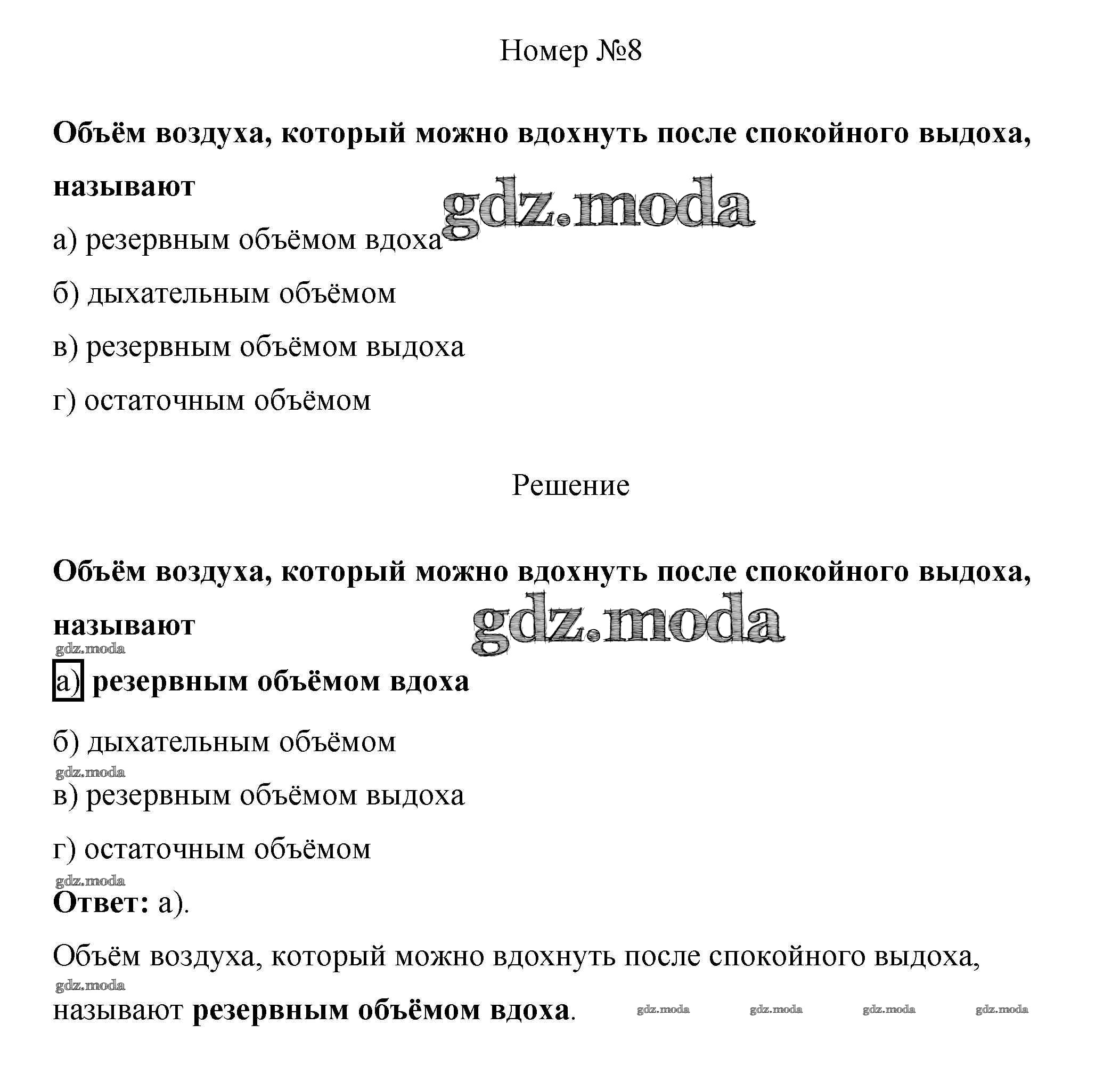 ОТВЕТ на задание № 8 Рабочая тетрадь по Биологии 8 класс Пасечник Линия жизни