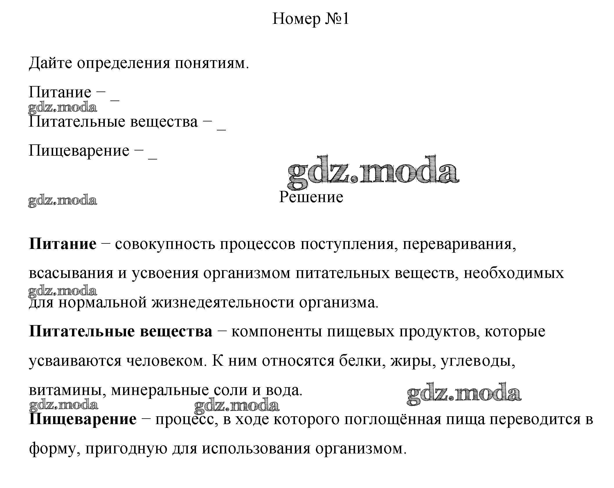 ОТВЕТ на задание № 1 Рабочая тетрадь по Биологии 8 класс Пасечник Линия жизни