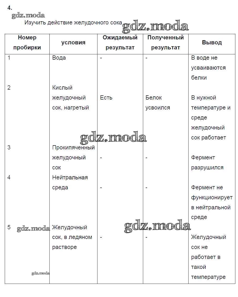 ОТВЕТ на задание № 4 Рабочая тетрадь по Биологии 8 класс Пасечник Линия жизни