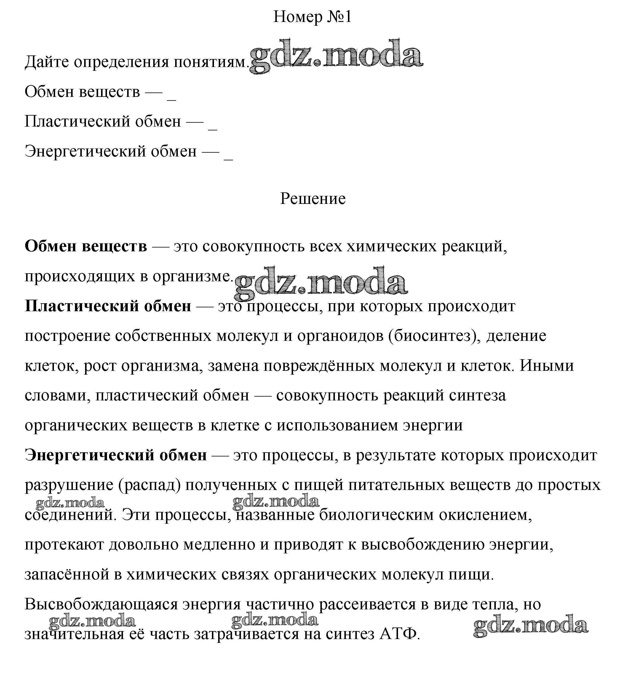 ОТВЕТ на задание № 1 Рабочая тетрадь по Биологии 8 класс Пасечник Линия жизни