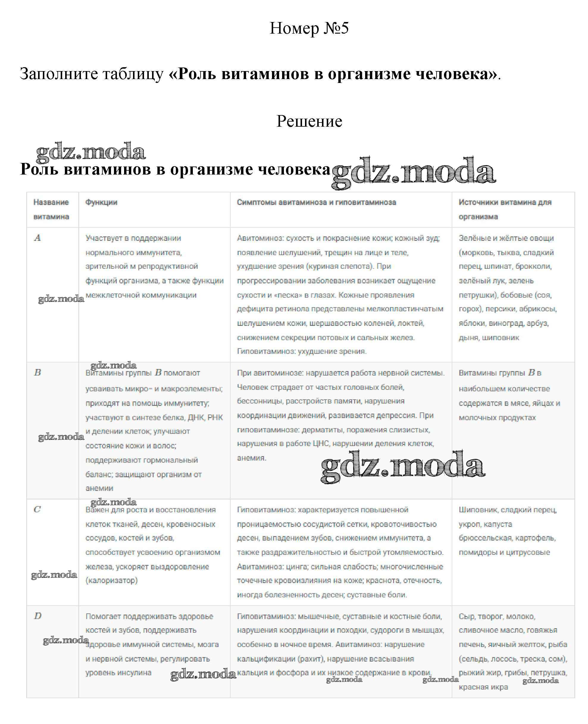 ОТВЕТ на задание № 5 Рабочая тетрадь по Биологии 8 класс Пасечник Линия жизни