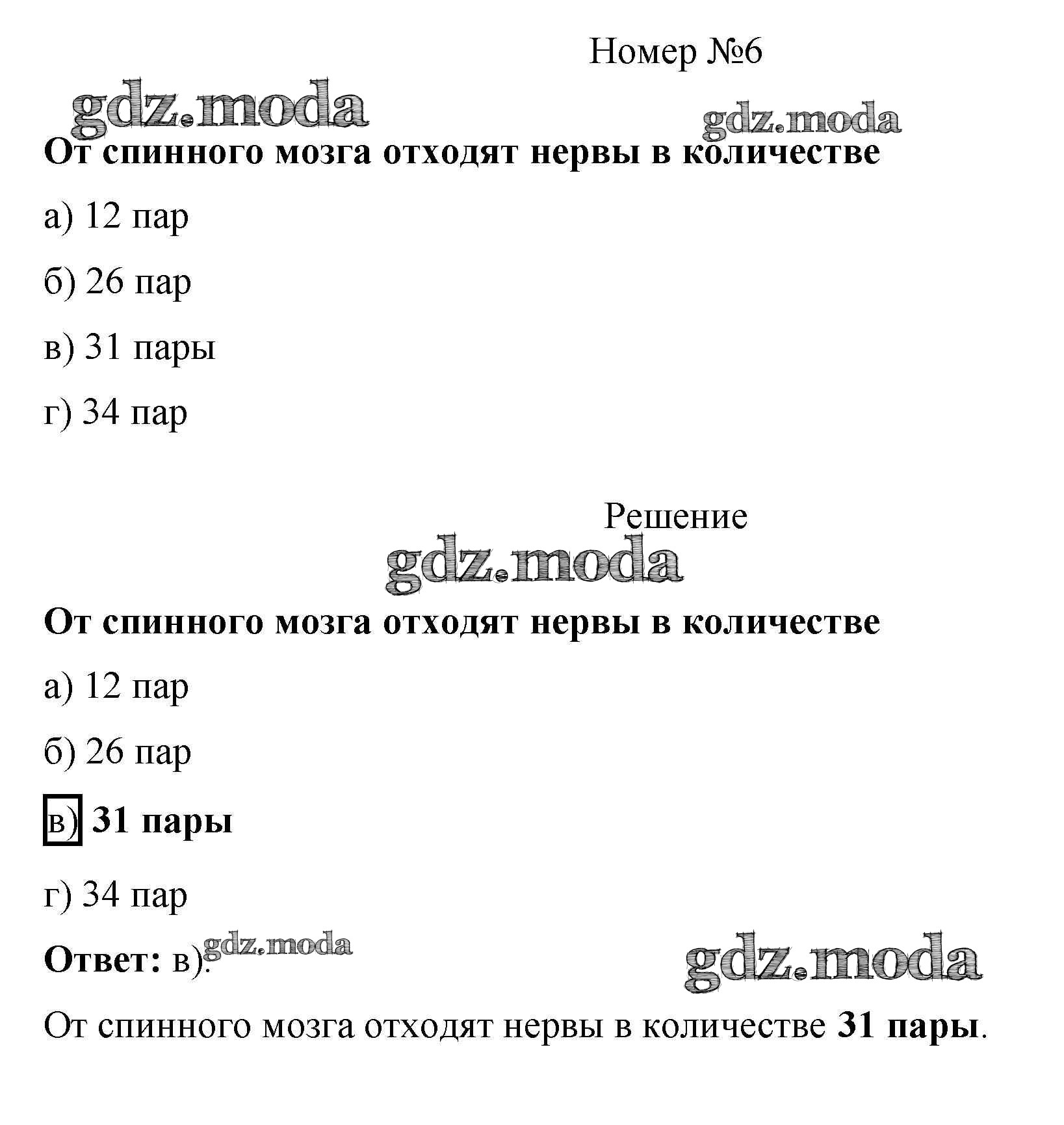 ОТВЕТ на задание № 6 Рабочая тетрадь по Биологии 8 класс Пасечник Линия жизни