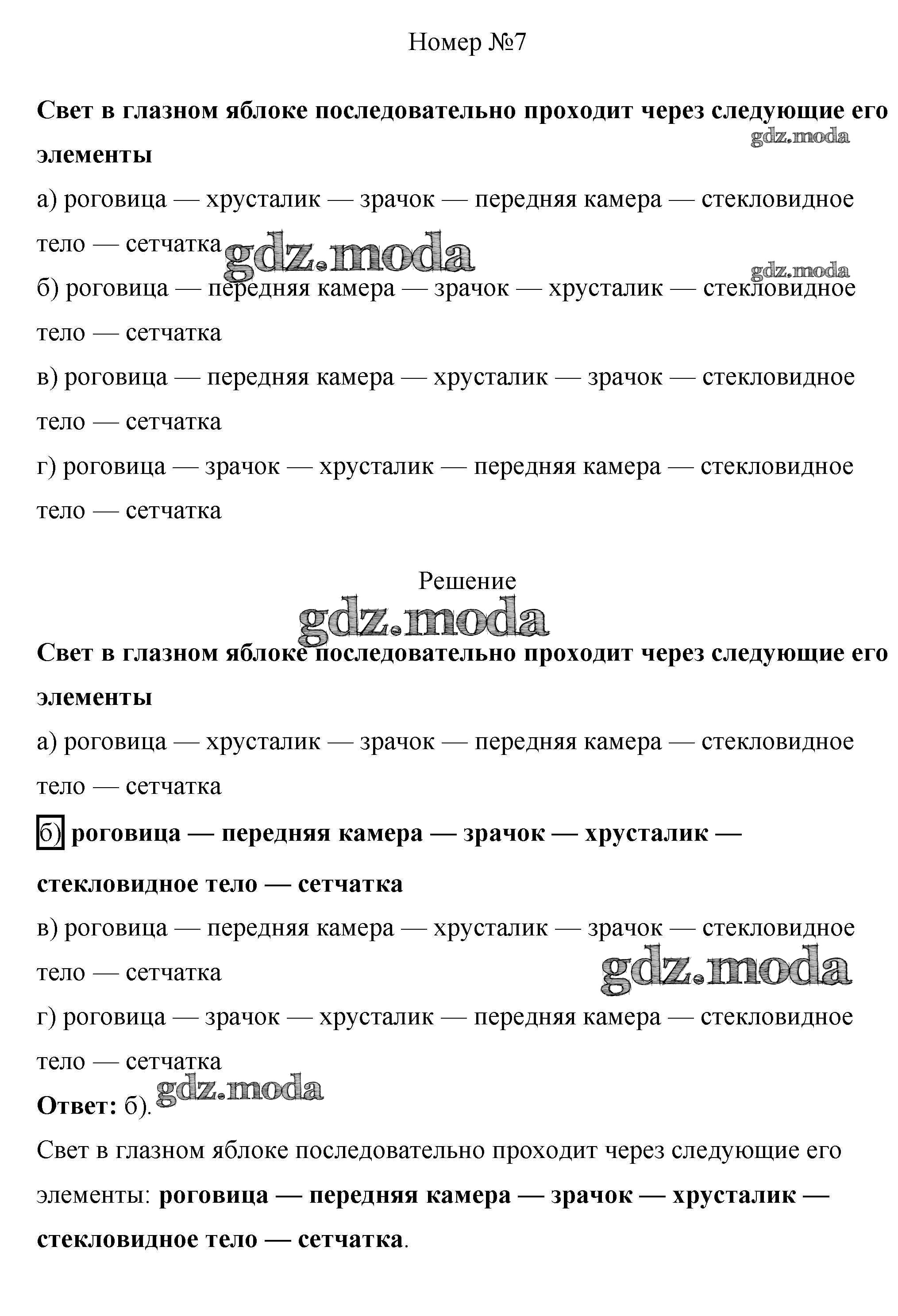 ОТВЕТ на задание № 7 Рабочая тетрадь по Биологии 8 класс Пасечник Линия жизни