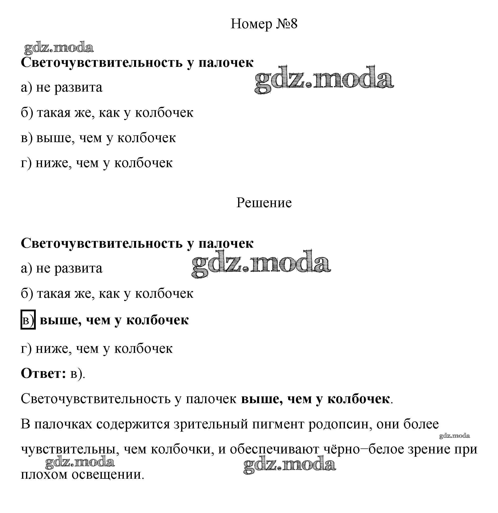 ОТВЕТ на задание № 8 Рабочая тетрадь по Биологии 8 класс Пасечник Линия жизни