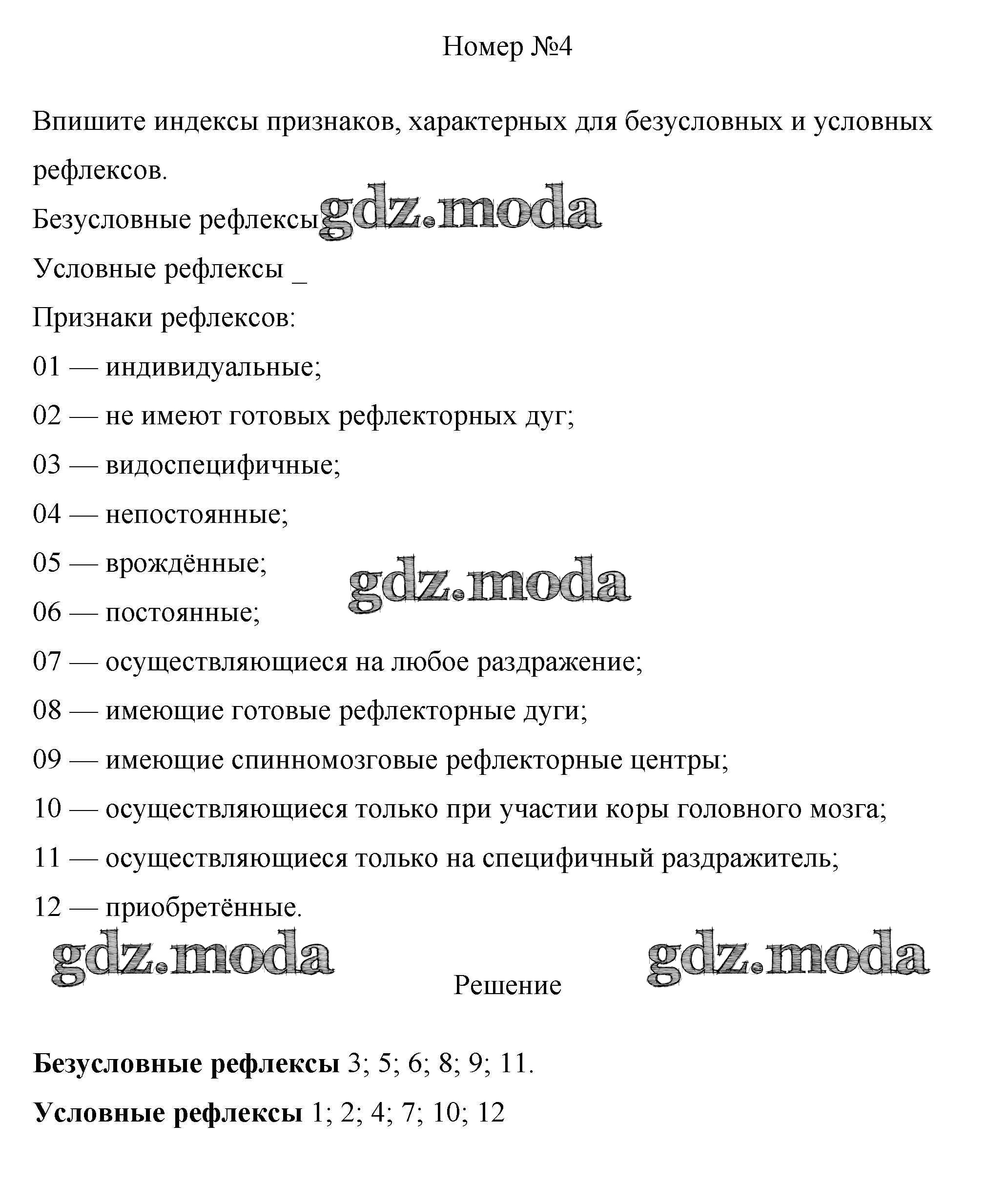 ОТВЕТ на задание № 4 Рабочая тетрадь по Биологии 8 класс Пасечник Линия жизни