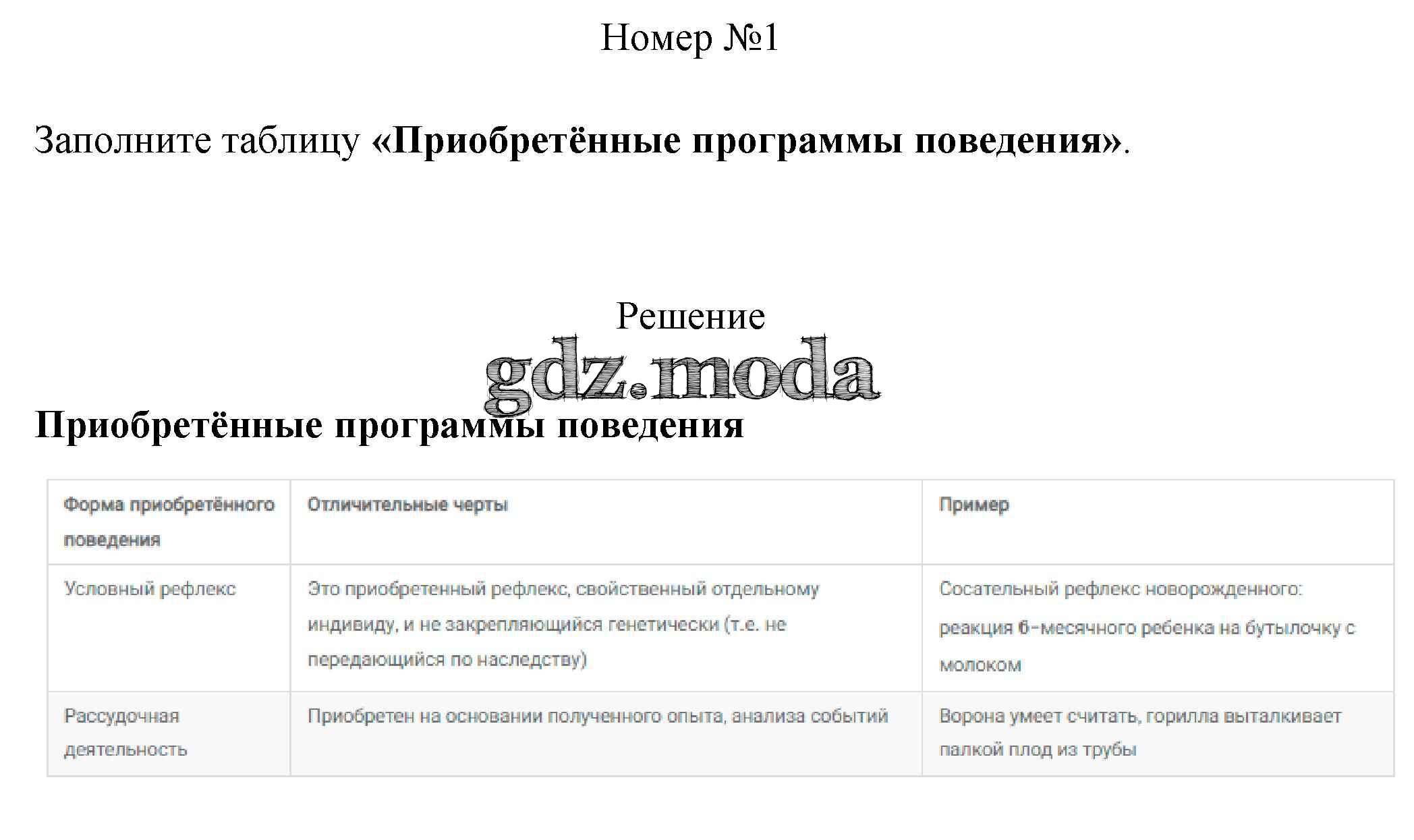ОТВЕТ на задание № 1 Рабочая тетрадь по Биологии 8 класс Пасечник Линия жизни