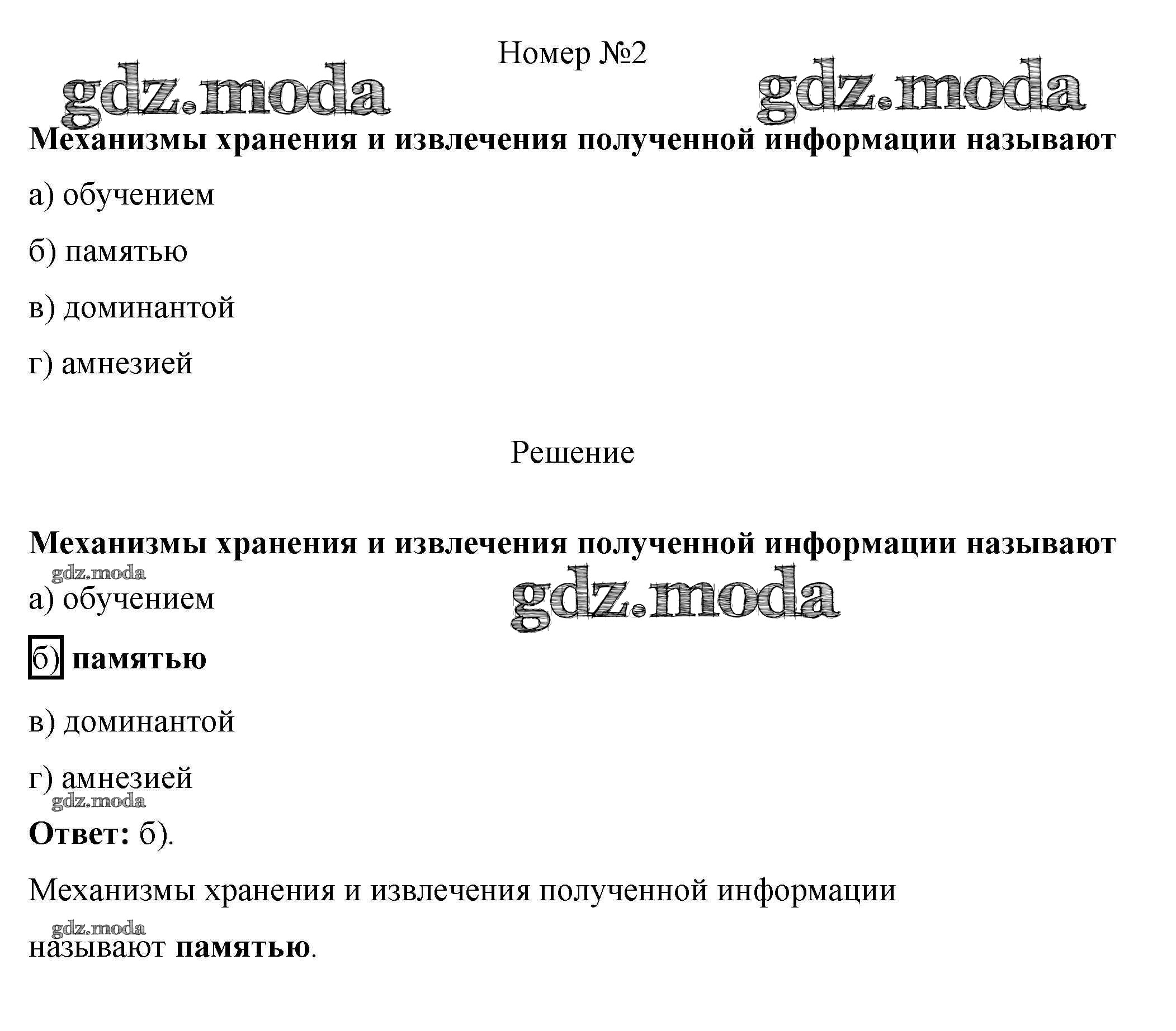 ОТВЕТ на задание № 2 Рабочая тетрадь по Биологии 8 класс Пасечник Линия жизни