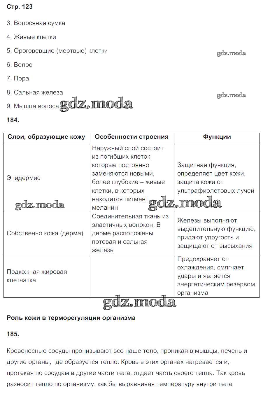 ГДЗ решение к заданию № 123 Биология 8 класс рабочая тетрадь Сонин Н.И. Дрофа 2017 ФГОС бесплатно на гдз.мода!