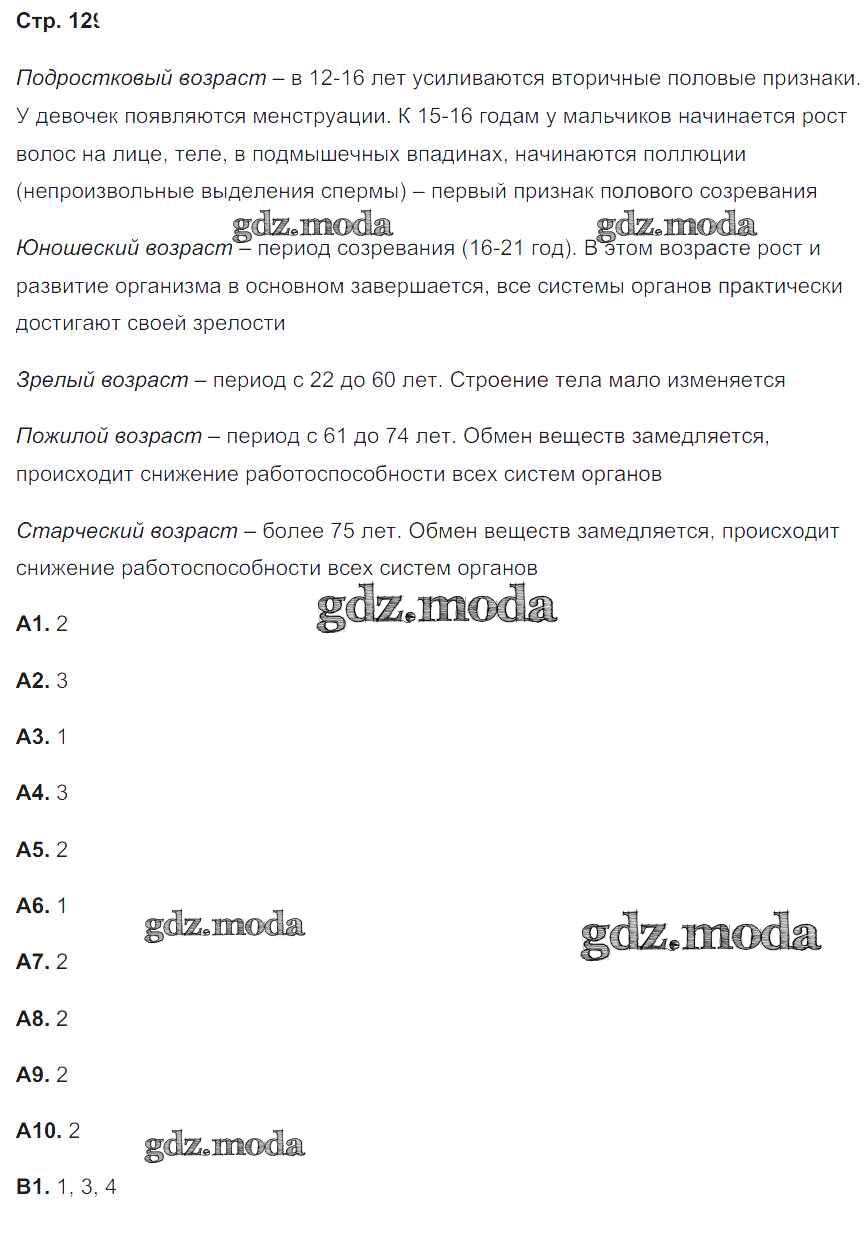 ГДЗ решение к заданию № 129 Биология 8 класс рабочая тетрадь Сонин Н.И. Дрофа 2017 ФГОС бесплатно на гдз.мода!