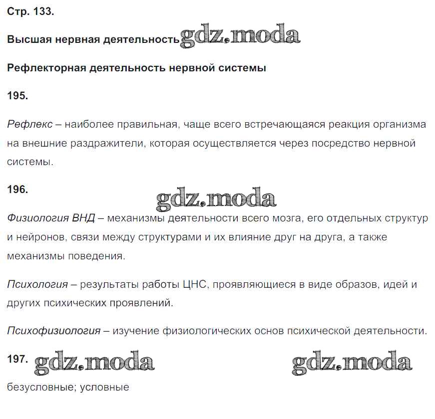 ГДЗ решение к заданию № 133 Биология 8 класс рабочая тетрадь Сонин Н.И. Дрофа 2017 ФГОС бесплатно на гдз.мода!