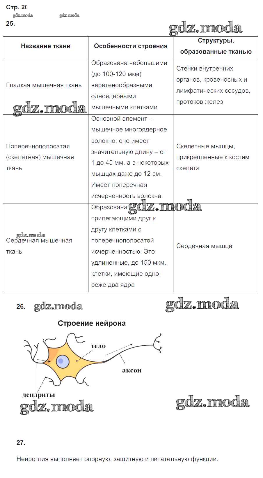 ГДЗ решение к заданию № 20 Биология 8 класс рабочая тетрадь Сонин Н.И. Дрофа 2017 ФГОС бесплатно на гдз.мода!