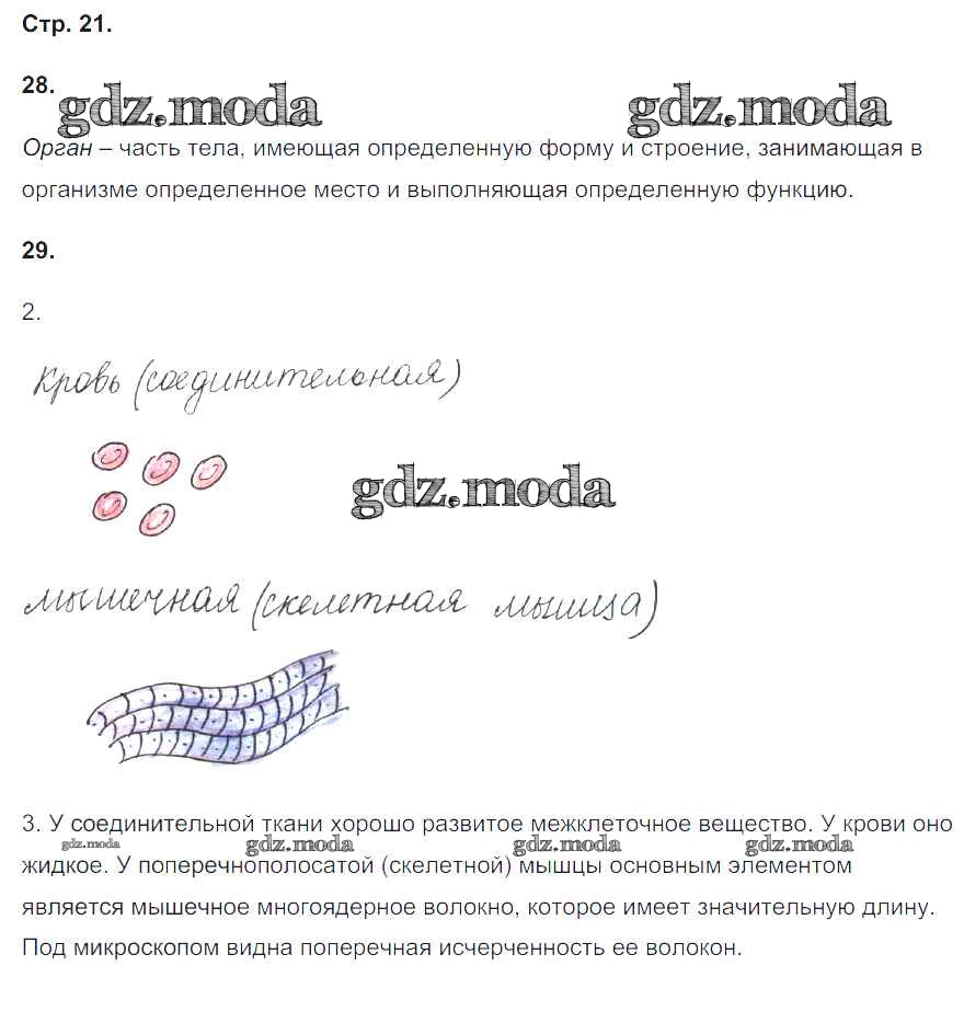 ГДЗ решение к заданию № 21 Биология 8 класс рабочая тетрадь Сонин Н.И. Дрофа 2017 ФГОС бесплатно на гдз.мода!