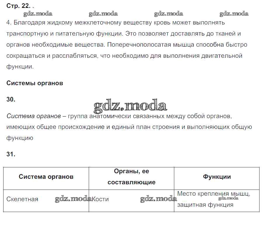 ГДЗ решение к заданию № 22 Биология 8 класс рабочая тетрадь Сонин Н.И. Дрофа 2017 ФГОС бесплатно на гдз.мода!