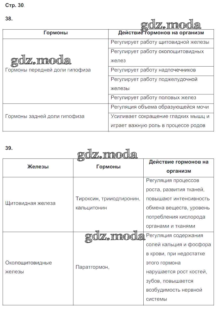 ГДЗ решение к заданию № 30 Биология 8 класс рабочая тетрадь Сонин Н.И. Дрофа 2017 ФГОС бесплатно на гдз.мода!