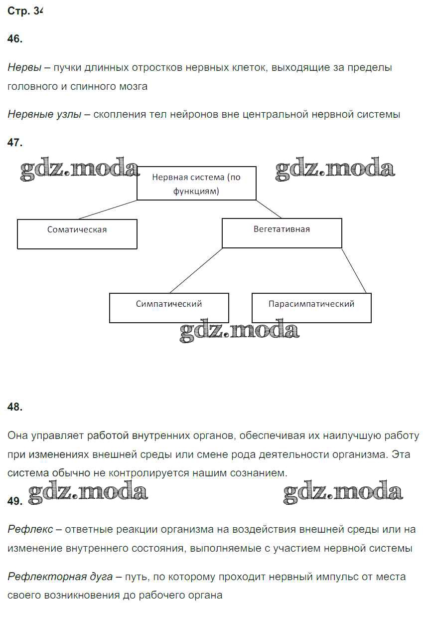 ГДЗ решение к заданию № 34 Биология 8 класс рабочая тетрадь Сонин Н.И. Дрофа 2017 ФГОС бесплатно на гдз.мода!