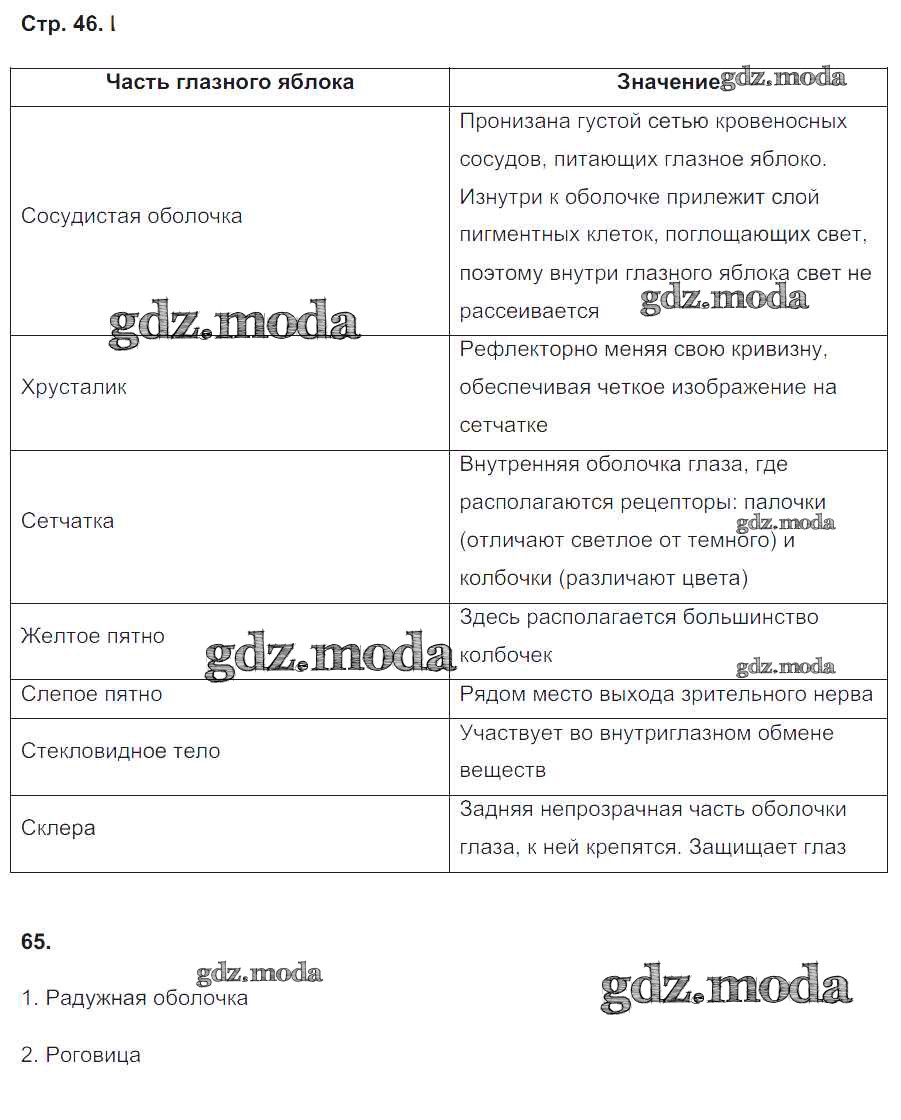 ГДЗ решение к заданию № 46 Биология 8 класс рабочая тетрадь Сонин Н.И. Дрофа 2017 ФГОС бесплатно на гдз.мода!