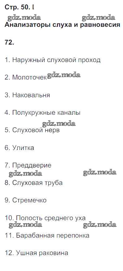 ГДЗ решение к заданию № 50 Биология 8 класс рабочая тетрадь Сонин Н.И. Дрофа 2017 ФГОС бесплатно на гдз.мода!