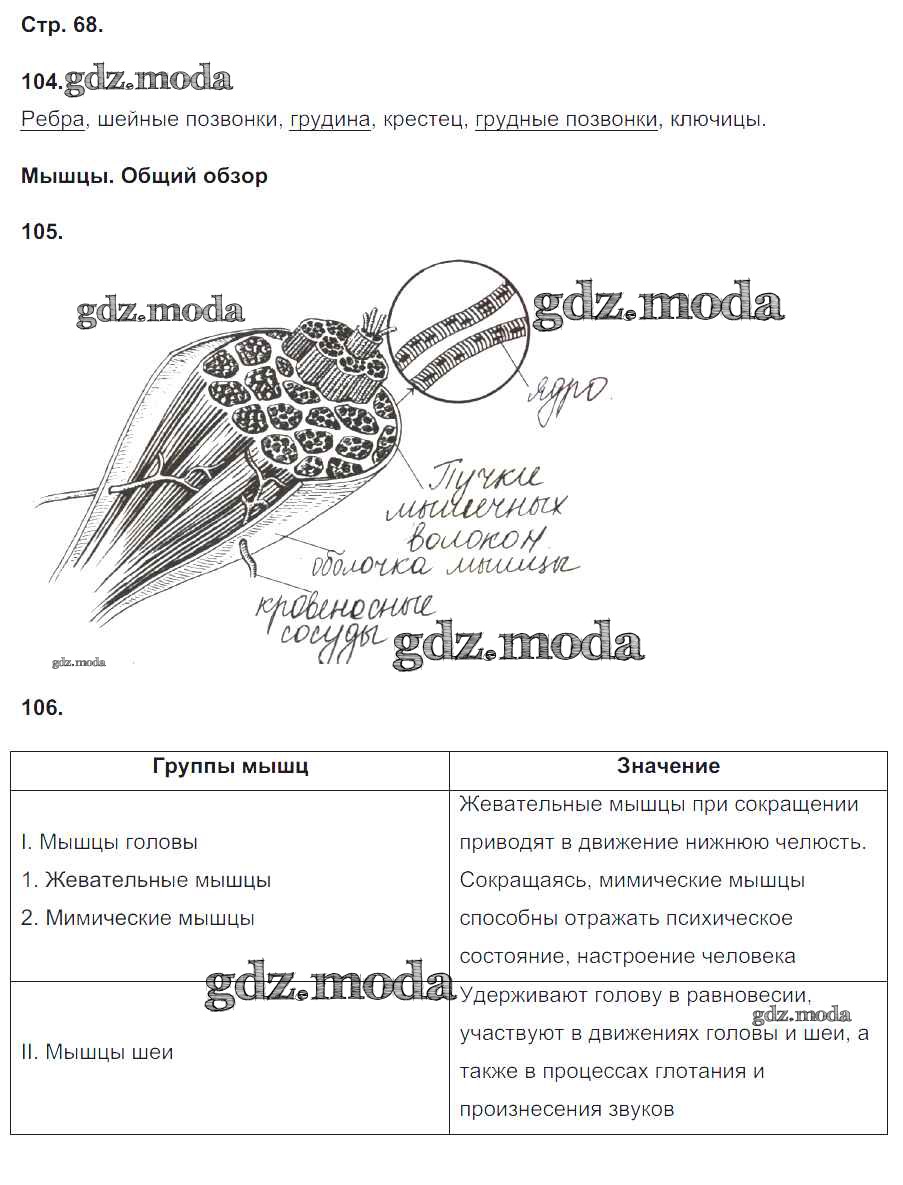 ГДЗ решение к заданию № 68 Биология 8 класс рабочая тетрадь Сонин Н.И. Дрофа 2017 ФГОС бесплатно на гдз.мода!