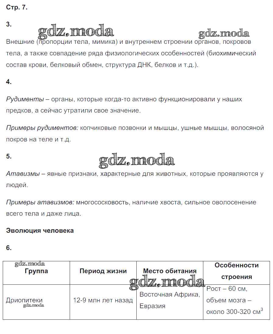 ГДЗ решение к заданию № 7 Биология 8 класс рабочая тетрадь Сонин Н.И. Дрофа 2017 ФГОС бесплатно на гдз.мода!